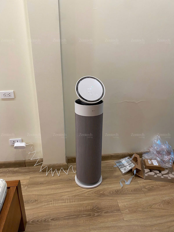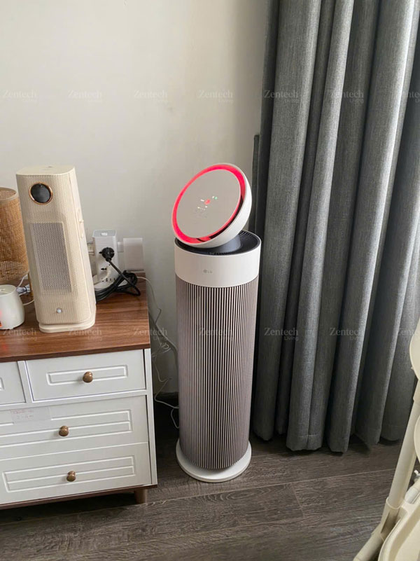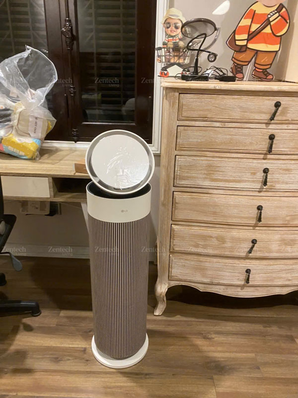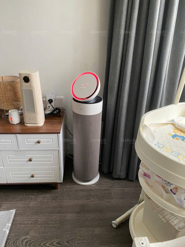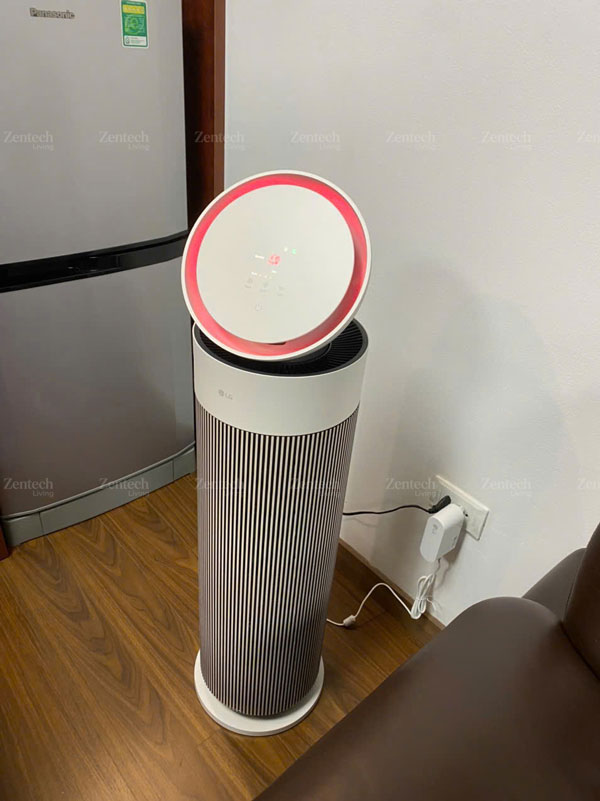 Không chỉ gọn, model này còn được LG nhấn mạnh ở yếu tố thẩm mỹ với thiết kế “nhỏ gọn mà đẳng cấp”, màu be thanh lịch, màn hình LED và cụm nút cảm ứng trực quan. Phần thân cao, mảnh và tối giản giúp máy nhìn hiện đại hơn nhiều so với cảm giác cồng kềnh thường thấy ở các thiết bị lọc khí công suất lớn. Với người dùng đang tìm một chiếc máy lọc không khí gia đình vừa có công năng rõ ràng vừa không làm rối không gian sống, đây là một điểm cộng rất lớn.