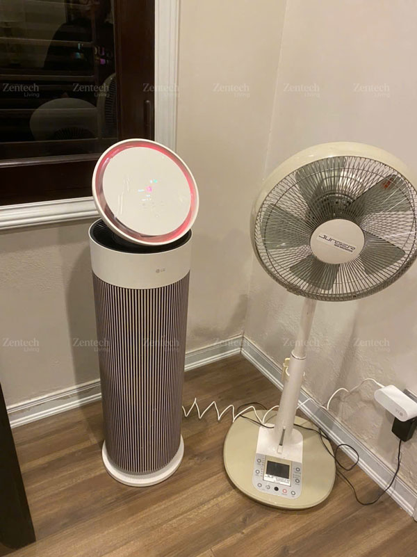 Một trong những công nghệ đáng chú ý nhất trên mẫu máy này là Clean Booster. Theo LG, Clean Booster có thể đẩy không khí sạch xa tới 5,5 mét, giúp bao phủ nhiều ngóc ngách hơn trong phòng. Đây là điểm rất thực dụng khi sử dụng trong không gian gia đình, bởi không ai muốn luồng khí sạch chỉ tập trung quanh khu vực đặt máy mà không lan đến nơi mình sinh hoạt nhiều nhất.
